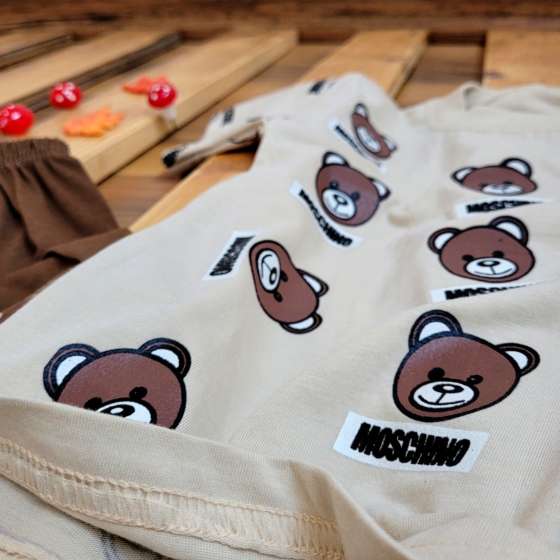 با تیشرت و شلوارک موسچینو، استایل خاص و بینظیری را تجربه کنید! طراحی شیک و منحصر به فرد این ست، شما را به مرکز توجه تبدیل میکند. از جنس باکیفیت و راحتی بینظیر آن لذت ببرید و با هر قدم، اعتماد به نفستان را افزایش دهید. همین حالا سفارش دهید و به جمع خاصپسندان بپیوندید!