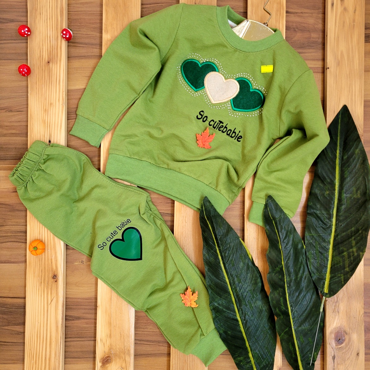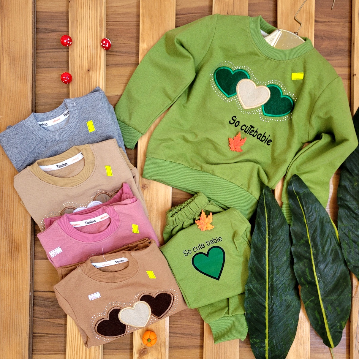 این ست بچگانه جذاب و پرانرژی شامل سویشرت و شلوار راحتی است که با طراحی قلبهای برجسته و نوشتهی "So cute babie" حسابی دلنشین شده. 👶💚جنس نرم و سبک آن برای پوست حساس کودک فوقالعاده مناسب است و کمر و مچهای کشی آزادی کامل برای بازی و تحرک فراهم میکند.این ست در رنگبندی متنوع (سبز، صورتی، کرم، قهوهای و طوسی) عرضه میشود تا متناسب با سلیقهی شما انتخاب شود. ✨یک انتخاب عالی برای پاییز و زمستان؛ هم برای استفاده روزمره و مهدکودک و هم برای مهمانیهای دوستانه. 🌿🍂